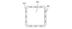放熱部材101は、さらに接続端104に近い一側に一つまたは複数の径方向排気孔107を有する。径方向排気孔107の形は孔状構造または網状構造の格子である。  The