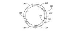 本考案は放熱部材101の内部に管状流路102を配置することによって軸方向孔を構成するため、放熱部材101上の発光端103に配置された電気発光体に生じた熱エネルギは、放熱体の表面から外部に放散される。同時に放熱部材101の内部の気流が熱によって上昇したり、冷却によって降下したりする作用が生じるため、管状流路102から構成された軸方向孔の発光端103に近い吸気孔から吸入された気流を、放熱部材101上の接続端104に近い径方向排気孔107から排出し、気流を流動させることにより、放熱部材101内部の熱気流の熱を外部に放散することができる。  Since the present invention forms an axial hole by disposing the