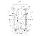 一方、放熱部材付き電気発光体において、管状流路102の内部気流をより円滑に流動させるために、放熱部材101の頂部内かつ発光端103に向かう軸方向に、錐状ガイド部301を配置することができる。或いは、軸方向コネクタ114と、放熱部材101の一側とを結合させ、かつ放熱部材101の発光端103に向かう軸方向に錐状ガイド部302を配置することができる。上述した錐状ガイド部301、302は放熱部材101の発光端103に向かう部位が細長い錐状を呈し、管状流路102内部の熱によって上昇した気流を径方向排気孔107へ誘導し、拡散させる。  On the other hand, in the electroluminescent body with a heat radiating member, the