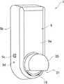 フック7にスリット11が係合することで、本体部5がベース3に取り付けられると共に本体部5の背面5aがベース3によって覆われる。本体部5の背面5aには、電力の供給をオンオフするためのスイッチ(図示せず)が設けられている。このため、スイッチは、不用意に操作されることが防止される。なお、本体部5の側面5bには、充電用のケーブル差込口5c及びリセットボタン5dが設けられている。  By engaging the