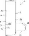 本実施例のカバー35は、開口部19aから本体部5外へ前後方向で突出するフード状で下方が開放された形状となっており、下方に挿入開口部37を区画している。  The