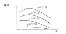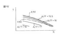 FIG. 10 shows the air-fuel ratio A / F in the first operation region I. In FIG. 10, the curves indicated by A / F = 15.5, A / F = 16, A / F = 17, and A / F = 18 have air-fuel ratios of 15.5, 16, 17, and 18, respectively. And the air-fuel ratio between the curves is determined by proportional distribution. As shown in FIG. 10, the air-fuel ratio is lean in the first operating region I, and the air-fuel ratio A / F is leaner in the first operating region I as the required load L decreases.