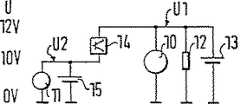 図3に示されている実施例では、休止状態における所期の電圧配分が図られ、この所期の電圧配分によれば通常の搭載電源においては12V(U1)で、これに対してスタータ10においては10V(U2)である。この場合バッテリ15の定格電圧も10Vとなる。このような電圧配分により次のようなことが保証される。すなわち放電したバッテリ15が充電/分離モジュール14を介して発電機ないしバッテリ13によって迅速かつ確実に充電されることが保証される。