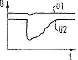 しかしながらスタータ11が操作された場合には、符号U1で示された発電機出力電圧は急激に低下する。なぜならスタータは非常に僅かな内部抵抗しか有していないからである。ここに生じる電圧配分状態は、図2中で時間tに関して示されている。
