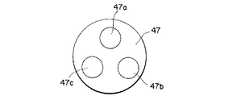 励起波長切換フィルタ47は、図5に示すように、円盤状のフィルタ枠に3枚の異なる透過波長帯域を持つバンドパスフィルタ47a,47b,47cが配設されて構成されており、内視鏡の種類に応じて、多波長光源46の前に47a,47b,47cのいずれかの領域を配置することで、観察部位へ照射する励起波長帯域を変えることができる。