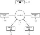 図1は、この実施の形態にかかるネットワークゲームシステムの構成を示すブロック図である。図示するように、このネットワークゲームシステムは、複数(ここでは、4つ)のビデオゲーム装置100と、ゲームサーバ装置200とから構成される。ビデオゲーム装置100は、それぞれゲームサーバ装置200にネットワーク151を介して接続される。