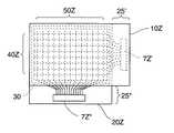 このような基板間導通を利用すると、図23を参照して説明するように、電気光学装置の小型化を図ることができる。図23において、第2の透明基板20Zは、第1の透明基板10Zよりも大きく形成されており、第2の透明基板20Zの一部が張り出し部25Zとして第1の透明基板10Zの縁から張り出している。そして、この張り出し部25Zには、第1の透明基板10Zの第1の電極40Z、および第2の透明基板20Zの第2の電極50Zに対して所定の信号を供給するための駆動用IC7が実装されている。ここで、図23に円Cで囲んだ領域で、図22を参照して説明した基板間導通を利用すれば、第2の透明基板20Zに実装された駆動用IC7Zの出力端子は、基板間導通を介して、第1の透明基板10Zの第1の電極40Zの各々にも導通されることになる。