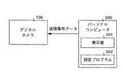 上述のデジタルカメラ100は、機能的には、図1に示したように、画像ファイル記憶部101、バイナリ→テキスト変換部102、画像ファイル送信部103、画像ファイル受信部104、テキスト→バイナリ変換部105、及び画像ファイル表示出力部106により構成される。