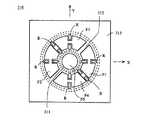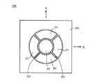 ところで、第7図および第8図に示されているように、上述した電極層E1,F1,E2,F2はX軸上に配置された電極層である。これに対し、電極層E3,F3,E4,F4はY軸上に配置されている。したがって、電極層E3,F3間への電圧印加と、電極層E4,F4間への電圧印加と、を交互に行えば、振動子130をY軸方向に往復運動させることができることは、容易に理解できるであろう。