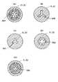(D)に示されるチューブ素子31,32の開孔36Dは、円形の基礎孔の内壁からその中心に向かって細長い三角形状及び円形の突起が交互に3つづつ突出された形状とされている。