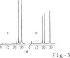 図5は、次のものを示す。A、鋳型4の存在下、0℃で2時間後、化合物1及び2の反応による生成物のIE HPLCで、主なピークはカップリング生成物3及び鋳型4に対応し、化合物1(ピークが17分)はほとんど完全に消費されたことを注記する;B、KI3で処理した後、ジチオトレイトール(Dithiothreitol)(DTT)によって処理した同じ生成物;化合物3は2つのオリゴヌクレオチド開裂生成物により置換され、18分及び22分で溶出した。