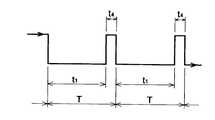 図3に示す例は、1サイクルの時間Tとして、原水のみを通水する時間帯t1と原水に次亜塩素酸ナトリウム溶液を添加する時間帯t2とを3回繰り返した後、図2の場合と同様に原水のみを通水する時間帯t3、原水に亜硫酸水素ナトリウム溶液を添加する時間帯t4によって構成したものである。