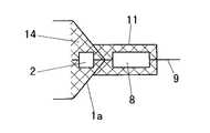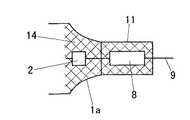 発光管1の長手方向の両端部内には、それぞれ発光管1の両端の電極封止部11に封着された電極2が配設されている。電極2は、電極封止部11内で例えばモリブデンよりなる金属箔導体8の一端に接続されている。金属箔導体8の他端は電極導入線9を介して発光管支柱5に接続されている。