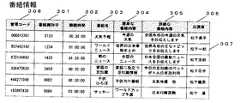 図3に番組情報についてその例を示す。番組情報は、例えば番組識別子301、継続時間302、番組名303、簡単な番組内容304、詳細な番組内容305、出演者306、管理コード308からなる番組情報エントリを登録する。例えば、307には番組識別子「1234」、継続時間「01:00:00」、番組名「ワールドニュース」、簡単な番組内容「世界の出来事総まとめ」、詳細な番組内容「世界各地の主なトピックをお伝えします」、出演者「松下一郎」が設定されている。