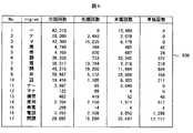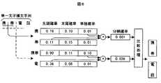 その後、上記出現情報ファイルを参照し、各1−gramについて、それぞれ先頭確率と末尾確率を算出し、出現確率ファイルに格納する。例えば、1−gram“携”の先頭確率は768 / 4,740 = 0.16、末尾確率は 492 / 4,740 = 0.10となる。図3に出現確率ファイルの例を示す。