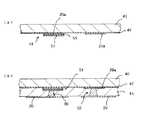 つまり、図5(a)に示す銅版40のエッチングは、銅板40の全面を一様な速度でエッチングすることは至難のことであり、エッチング面に凹凸が形成され易い。この点、シードレイヤ42に銅板40のエッチング液にエッチングされないクロム(Cr)層41aを形成しておくことによって、銅板40のエッチングが速く進行する個所においても、エッチングがシードレイヤー42のクロム(Cr)層41aに到達したとき、エッチングがストップする。このため、銅版40のエッチングがストップする個所が経時と共に順次拡大し、図5(b)に示す様に、シードレイヤー42のクロム(Cr)層41aの全面が露出した時点で銅板40のエッチングが終了する。