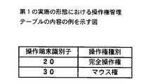 図4は、操作対象管理テーブルの内容の一例を示す図である。同図に示されるように、操作対象管理テーブルには、被操作端末識別子、及び付与されている操作権の操作権種別が記憶される。なお、本テーブルには、当該操作端末についての情報のみが、当該操作端末が操作権の付与を要求した時点で格納される。