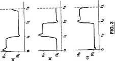 図3に例が示されている。図3の各部分a)、b)、及び、c)において、Rhは多い流量を、Rlは少ない流量を示し、0からt3までの時間は、繰り返されるであろう周期を示す。周期は、3つの実質的に等しい時間間隔、0からt1、t1からt2、及び、t2からt3に分割される。これらの時間間隔の各々において、空気吐出しシステム240の1つの分岐とその付随する配分マニホルド251とは、Rhで空気を受け取り、一方、他は、Rlで空気を受け取る。同様に、空気吐出しシステム240の各分岐及びその付随する配分マニホルド251は、周期の1/3に対してRhで、また、周期の2/3に対してRlで空気を受け取る。