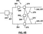 図4Bにおいて、空気供給装置242は、空気流を低流量管路262と高流量管路264に分割するコネクタ262内に空気を送る。低流量管路262中のバルブ266は、低流量管路262中の流量が好適には高流量管路264中の流量の半分未満であるように調整される。好適にはタイマ、マイクロプロセッサ、又は、次に述べるバルブに対して電気的又は機械的に結合する1つ又はそれ以上のモータである制御装置268は、電磁バルブ又は三方ボールバルブであり得る低圧バルブ270と、電磁バルブ又は三方ボールバルブであり得る高圧バルブ272とを制御し、そのため、第1の時間間隔(周期の第1の部分)の間、低流量管路中の空気がマニホルド251の1つに流れ、高流量管路中の空気が他のマニホルド251に流れる。第2の時間間隔(周期の第2の部分)の間、低圧バルブ270及び高圧バルブ272は、低流量管路262中の空気が交差導管274を通ってマニホルド251へ流れ、高流量管路264中の空気が逆交差導管276を通って別のマニホルドに流れるように制御される。