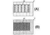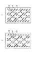 図2 に示すようにマスク基板62a,62b 上の各部分マスクパターン63a 及び63b は夫々縦ハッチング部及び横ハッチング部で示すように矩形の開口部64が抜けた相補的な斜線ストライプ状パターンになっている。