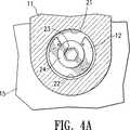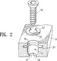 図1のアセンブリの部分破断図を示す図2に最適に図示されるように、安定要素の穿孔13は、安定要素の前方表面の第1開口16、安定要素の後方表面の第2開口17、そこに延びる横断通路18、及び、横断通路の前方部の溝21を有する。環状カラー12は、通路22を画定し、溝21内に収容されるように形成され、可逆的に膨張可能な内外径を有する。図3、3−3線断面図、及び3A−3A線断面図に示すように、環状カラー12は、溝よりも小さく、横断通路よりも大きな非膨張外径に付勢されることにより溝内に収容されている。カラーの膨張した外径が溝径よりも小さく、かつ、高さ寸法が溝高さよりも小さいので、カラーはそこで膨張可能である。