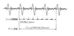 これは、ポストフィルタ内のスペクトル整形フィルタのフィルタ係数の更新周期が長いと短時間の音声スペクトルの変化にポストフィルタ特性が追従できずに出力音声が劣化することがある点を考慮し、フィルタ係数を短い周期で更新することが考えられるが、これに応じてゲイン調整用のゲイン値も短い周期で更新させると、ピッチ、ピークの位相の関係から1ピッチの期間内でゲイン値が大きく変動することがあり、クリックノイズを発生することがある。そこで、フィルタ係数の更新周期は短くし、ゲイン調整用のゲイン値の更新周期を長くすることにより、ゲイン変動を抑え、良好なポストフィルタ処理を実現するわけである。
