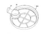 フィルターセット部材22は図6、図7に示す下部材22Aと図8に示す上部材22Bとから構成され、両部材22A、22B間に図示を略すフィルターが挟着固定される。下部材22Aにはその前部にツマミ部23が形成されると共に、カバー部材3を閉じたときに連通口14に対向する吸引筒24が形成されている。その吸引筒24の下部口部には風向板25が図7に示すように形成されている。上部材22Bにはツマミ部26が形成されている。