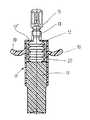 本発明の装置を快適に操作できるようにするため、把持器を設けることができる。この把持器はブッシュの外側から外方に突出することができ、人差し指と中指のための接触面を形成する。親指だけがピストンの作動のためさらに必要となる。この把持構造はブッシュ上に形成されたフランジ又はブッシュに配設された2つの直径方向に向き合うアームで構成することができる。