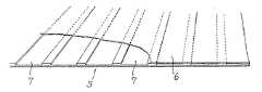 図11に示すシートは、表面すじ状ラミネート層2と基材1の間に伏在経路4を形成し、ラミネート層2に沿って経路3を露出させ、露出経路3と伏在経路4に沿って流体を流すことに特徴がある。この方式によると、基材1に対しすじ状に表面ラミネート層2を転圧溶着させるため、溶融樹脂の転圧時に、予め設けてあった経路内に樹脂が入り込み、結果的に、的確に必要とする流路断面を確保することができない。従って、搬送流体の流量について制約があり、大量の流体を輸送することが難しい。また、流速が大きいと規正効果の失われることが経験された。