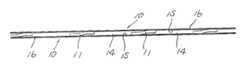 図14は、こうした技術的課題に対応して検討されているものである。この構成によれば、流量の増減に伴って上側のシートが浮上し、内圧を解放すると共に上下対称に流体を挟んで流体の規正効果を維持している。しかしながら、このシート構成によると、経路距離が長い場合、あるいは流体の流速が大きいと、上下シートのうね状突起8の横方向のずれを拘束することが困難になる。うね状突起に交差する横方向にシートを拘束して左右の相対的なずれを制限する方策をとらなければならないが、こうした手法は作業が面倒である。
