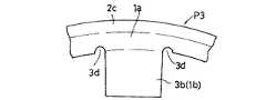 次に図7に示すように、第2中間加工品(P2)の凹部(2a)の底壁に対し、爪部(1a)に対応する部分(3b)を残存させる態様に、穴開け(内径抜き)加工を行って、円錐囲周形状のリング部(1a)の小径側端縁に、内径方向に突出する複数の爪部形成片(3b)が形成された第3中間加工品(P3)を形成する。