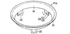 次に図1および図2に示すように、第2中間加工品(P2)の凹部底壁に対し、シンクロナイザーリングの爪部に対応する部分(21)とそれらの外側の打抜き代(22)を残存させる態様に、内径抜き(穴開け)加工を行う。こうして、略円錐囲周形状のリング部(1a)と、そのリング部(1a)の小径側端縁に、内径方向に突出し、かつ周方向に等間隔おきに設けられた複数の打抜き代付爪部形成片(20)とを有する第3中間加工品(P13)を形成する。