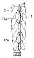 そこで、図5に示すように、ヒンジ金具6に異なる大きさの屈曲部12b、12cを形成し、落下高さが低い場合には、屈曲部12bがばねとして作用する。落下高さが高い場合には、屈曲部12bに加えて屈曲部12cもばねとして作用する。このため、落下高さに応じてヒンジ金具6の剛性を変化させることができる。いうまでもなく、1つのヒンジ金具6が持つ屈曲部12b、12cの種類は2種類に限定されないし、屈曲部12b、12cの個数も2つに限定されない。また、ヒンジ金具6の屈曲部12b、12cの部分の斜辺は、その傾斜が高いほど、ばねとしての剛性は高くなる。例えば、そこで、屈曲部12cよりも屈曲部12bの傾斜を高くする。これにより、屈曲部12bのばねとしての剛性をより高くすることができる。