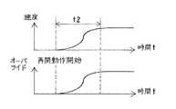 続くオーバライドの処理では、フィルタ部の出力を次の条件式(1)、(2)を満たすように修正する。なお、オーバライド値をβ%(0≦β≦100)、フィルタ部出力が表わす速度をvflout 加速度をαflout 、オーバライド処理後の出力が表わす速度をvovout 、加速度をαovout で表記する。