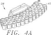 図3に示すサンプルカルーセル24は、4個の希釈容器保持場所36と4個の希釈セクション保持場所38とを有する。各希釈セクション28は、図4A−4Cに示すような複数の希釈カップ42を有する。通常、各希釈セクション28は、成形プラスティックからつくられる。好ましくは、各希釈セクション28は、洗浄を容易にするために簡単に設置され、サンプルのカルーセル24から除去される。また、希釈セクション28は、道具を使用することなく、サンプルカルーセル24に対して容易にかつ迅速に設定され、取り外し可能であることが好ましい。図に示す実施例は、希釈セクション28が希釈セクション保持場所38にスナップ適合することができるような弾性ノード44を有する。
