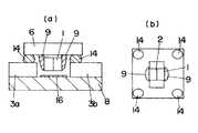 一方、発光素子1は受光部品6に積層され、銀ペーストよりなる接続部材9を介して受光部品6に一体に結合されるとともに、受光部品6の表面に形成した導電パターン(図示せず)に電気的に接続される。このような発光素子1と受光部品6との積層体をビルドアップ素子と呼んでいる。