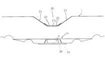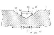 また、上記線状光源装置Aでは、導光部材1の凹部16内にLED3が配置されているが、上記凹部16は、凹入部20の中心位置に対向するように予め形成されている。したがって、LED3を導光部材1に取付ける場合には、このLED3を上記凹部16内に配置させる限りは、このLED3が上記凹入部20の中心部から大きく位置ずれすることが解消される。したがって、LED3から発せられた光が、凹入部20の2つの傾斜面21,21のうち、いずれか一方のみに偏って照射されることが容易かつ確実に解消される。その結果、導光部材1の長手方向の一端部領域と他端部領域とで出射光量に大きな差が生じることもなく、光出射面12から出射される光の量のばらつきを一層少なくすることが可能となる。上記凹部16は、既述したとおり、奥側ほど幅狭となる断面略台形状であるが、これに対して、LED3は、図4に示すように、基板30に対して導電性接着剤31などを介してボンディングされており、一般的には、上記導電性接着剤31は、LED3の下方においてその側方に膨出したかたちとなる。したがって、この導電性接着剤31とLED3との全体の側面視形状は、上記凹部16の断面形状と略合致した形状となり、LED3を凹部16内に配置して位置決めするのに好都合となる。