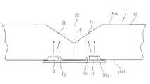 上記第1側面10Aの長手方向中央部には、正面視略V字状の凹入部20が設けられている。この凹入部20は、2つの傾斜面21,21を形成するものであり、これら2つの傾斜面21,21も鏡面状の平面とされている。これら2つの傾斜面21,21の底部領域は、光を透過させない非透光面22とされている。この非透光面22は、たとえば上記2つの傾斜面21,21の底部領域の表面に、Al,Cr,Agなどの光沢材料を蒸着し、非透光性の膜23を形成することによって設けることができる。