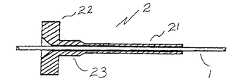 ここで図1を参照すると、カテーテル1が、フランジ22の付いたスリーブ部分21を有するスリーブ2と係合している。スリーブ部分21の内径はカテーテル1の外径と相補的である。フランジ22に隣接するスリーブ1の端は前記装置を強化する肩部23を有している。