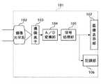 図中の101はカメラ本体、102は撮像光学系である。撮像光学系102からの被写体像は撮像素子103で画像信号に変換され、A/D変換部104や信号処理部105を経て各種処理が施された後、メモリカード等の記録部106に保存され、モニタ等の画像表示部107にてその保存される画像を含む撮像素子103が取り込んだ画像を確認できる。これらの構成のうち、撮像光学系102は従来の銀塩カメラに類似した機能を有し、信号処理部105や表示部107等はビデオカメラに類似した構成のものが存在する。