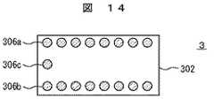 図8の電荷蓄積手段3を裏面(端子面)から見ると長方形の形状であり、複数の半田ボール+端子306aおよび−端子306bが長手方向に、正極負極が交互に、直線状に配置されている。