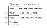図2は、本実施形態の電子カメラにおけるファイルシステムの階層構造を表す図である。最上位の層がユーザアプリケーション101である。ユーザアプリケーション101は電子カメラの内部で動くソフトウェアであり、ファイルをファイル名でオープンして読み書きした後クローズする。