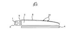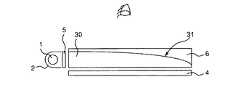 図1において、3は透明基板(以下導光体と呼ぶ)であり、石英、ガラス、透明樹脂、例えばアクリル系樹脂、若しくはポリカーボネイトなどを材料とする。導光体3の上面と下面はほぼ平行であり、上面から見ると導光体2はほぼ長方形である。導光体3の側面と上面、側面と下面とは、それぞれ、ほぼ90度の角度をなす。導光体3の上面にはスリット31が形成される。