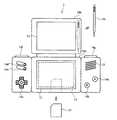 上部ハウジング18bの側面近傍には、必要に応じてタッチパネル13を操作するスティック16を収納するための収納孔(図1における二点破線領域)が形成される。この収納孔には、スティック16が収納される。下部ハウジング18aの側面の一部には、ゲームプログラムを記憶したメモリ(例えば、ROM)を内蔵したゲームカートリッジ17(以下、単にカートリッジ17と記載する)を着脱自在に装着するためのカートリッジ挿入部(図1における一点破線領域)が形成される。カートリッジ17は、ゲームプログラムを記憶する情報記憶媒体であり、例えば、ROMまたはフラッシュメモリのような不揮発性半導体メモリが用いられる。カートリッジ挿入部の内部には、カートリッジ17と電気的に接続するためのコネクタ(図2参照)が内蔵される。さらに、下部ハウジング18a(または上部ハウジング18bでも可)には、CPU等の各種電子部品を実装した電子回路基板が収納される。なお、ゲームプログラムを記憶する情報記憶媒体としては、上記不揮発性半導体メモリに限らず、CD−ROM、DVD、あるいはそれらに類する光学式ディスク状記憶媒体でもよい。  In the vicinity of the side surface of the