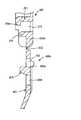 また、長側壁2に形成されたは下部ブロック204と同様の、一対の垂直片304aと垂直片304aを連結する連結壁304bとからなる下部ブロック304が、下部水平枠302の下面に形成されている。なお、この実施例には、図11に示されているように、ヒンジ雄部303と、ヒンジ雄部303に隣接して配設されている下部ブロック304との間では、下部ブロック304の垂直片304aと、ヒンジ雄部303の垂直片303aとが共用されている例が示されている。