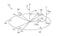 つぎに図2を参照すると、本発明の一実施形態による合成色空間113の図形的な描写が示されている。合成色空間は、色空間部分123と遷移部分126とを含む。色空間部分123の各々は、異なった所定の色空間の構成要素を含む。遷移部分126は、二つの近接する色空間部分123の間の遷移を提供するように機能する。この意味で、遷移部分126は、近接する色区間部分123のハイブリッドを含む。たとえば、遷移部分126は、近接する色空間部分123の重み付け和であってもよく、いずれか他のやり方で決めてもよい。輝度Bは、合成色空間113の中心から伸びる鉛直線によって示されていることに留意されたい。合成色空間113上で特定の色をプロットするには、直角をなす2個の色度値、すなわちC1CompおよびC2Compが使用される。直角三角形の斜辺129が問題の特定の色の色度値を表現する。色度値C1CompおよびC2Compの逆正接を取ることによって、色相角度θを見出し得る。特定の色に関連した輝度は、BComp項によって表現される。このように、合成色空間113における色の表現は、輝度BCompならびに色度値C1CompおよびC2Compすなわち、(BComp,C1Comp,C2Comp)によって表される。