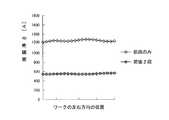 そして、前段のスリット群(孔列群)からのプラズマガスだけによる処理後の残膜の厚さと、前段と後段の2段階で処理した後の残膜の厚さを、ワークの左右幅方向にわたって測定した。