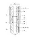 上述したように、各電極間スリット10aの上端部は、整流モジュール20の導入孔24aに連なっている(図8)。As shown in FIGS. 6, 9, and 10, between the front end portions and between the rear end portions of the two