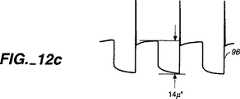 図12a、12b、12c及び12dからなる図12は、本発明によるマイクロアクチュエータの曲げやすい振動板のたわみのプロフィロメータの測定を示す。