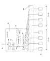 図2に示された記憶装置10においては、上述したコントローラ14と、アレイAおよびアレイBとの間は、例えば適切なスイッチング手段を含むコネクタ手段34により接続されているのが示されている。このコネクタ手段34を介して、SATA32は、アレイAおよびアレイBを構成する記憶媒体36a〜36hへと接続可能とされている。図2に示した記録装置の特定の実施の形態においては、SATA32は、通常動作の場合にはそれぞれの記憶媒体36a〜36dへと、図2の実線で示されるように、コネクタ手段34に含まれて構成されているスイッチング手段38を介して接続されている。